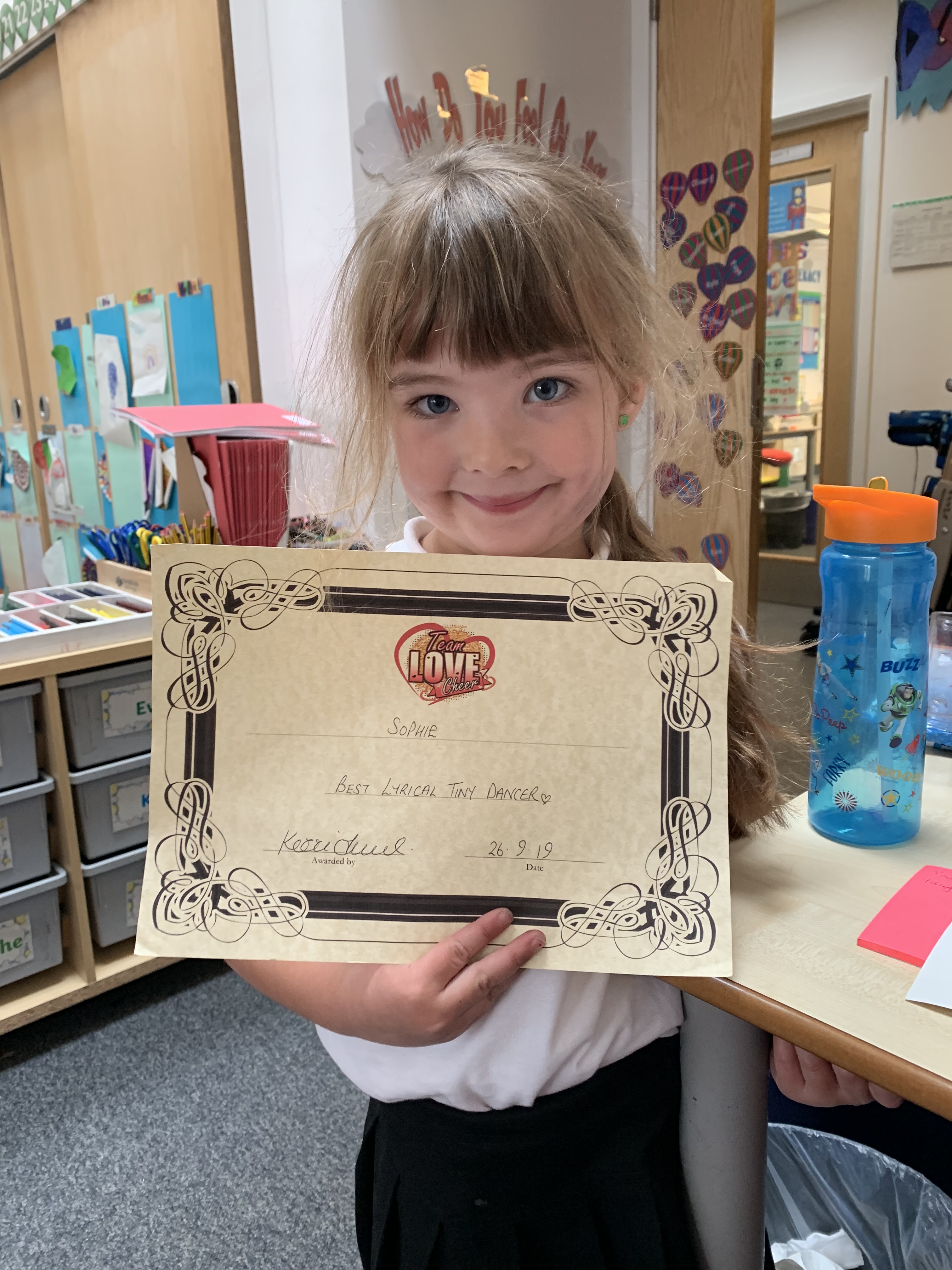 Well done to Sophie for achieving her certificate for Best Tiny Dancer. We loved hearing all about it and we are all very excited to hear about more of your dancing achievements.